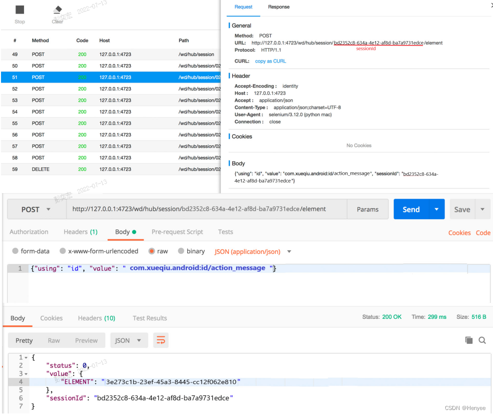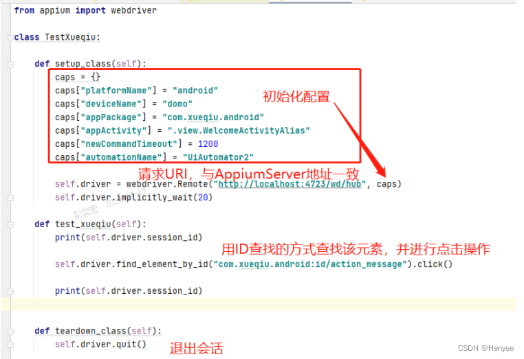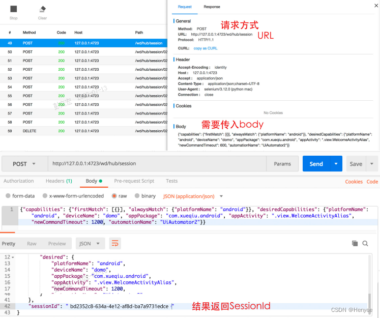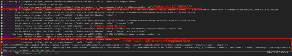 测试脚本发送对应的请求给AppiumServer,AppiumServer进行初始化完成后,会返回sessioId,且该sessionId会用于下一个请求;