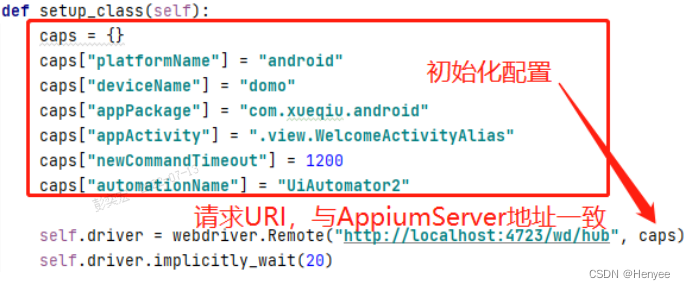 ①创建会话的请求,将接收到AppiumClient发送的desired capabilities,进行driver初始化,完成一系列的准备工作,并返回结果给AppiumClient。: