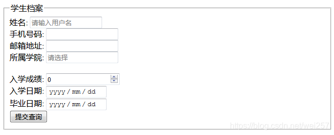 2.fieldset(字段集):将表单内容的一部分打包,生成一组相关表单的字段。当一组表单元素放到 <fieldset> 标签内时,浏览器会以特殊方式来显示它们,它们可能有特殊的边界、3D 效果,或者甚至可创建一个子表单来处理这些元素。基本语法格式如下: