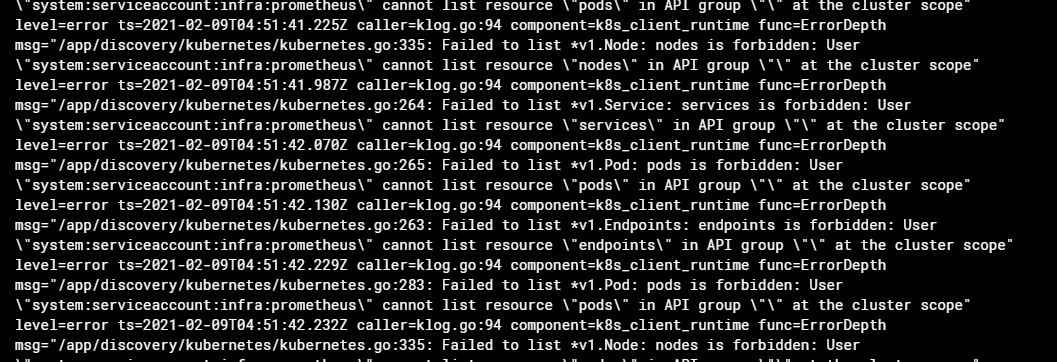【解决】cannot list resource \"services\" in API group \"\" at the cluster scope",更改prometheus集群访问权限即可