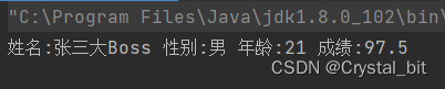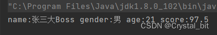 System.out.println("姓名:"+stu.name+" 年龄:"+stu.age+" 性别:"+stu.gender+" 成绩:"+stu.score);运行效果: