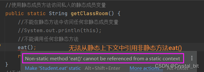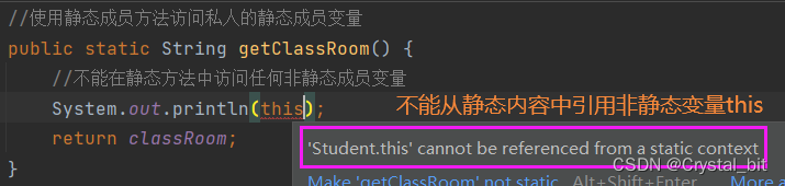 3. 不能在静态方法中访问任何非静态成员变量,如图: