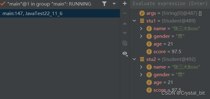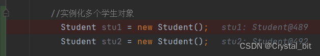 1. this的类型:对应类类型引用(示例中this就是Student类 类型的引用),哪个对象调用就是哪个对象的引用类型(stu和stu2的引用类型都是Student)。