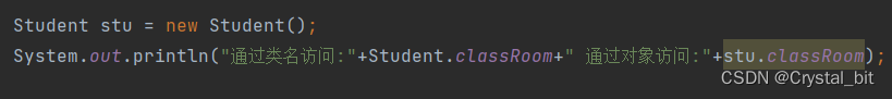 2. 既可以通过对象访问,也可以通过类名访问,但一般更推荐使用类名访问(因为它是类成员)。如下: