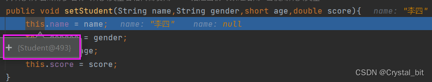 在成员方法中,因为局部变量优先原则,如果不用this引用指向当前对象的成员变量,就会造成形参自己给自己赋值,而对应成员变量无法被赋值。所以要将setStudent()成员方法修改如下: