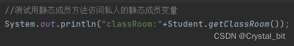 如果静态成员变量用private(只能在当前类访问该成员变量)修饰,而成员方法用public(任何地方都能访问)修饰,我们该如何在类外访问该静态成员变量呢?我们可以通过static修饰的成员方法,也就是静态成员方法来访问。示例代码如下: