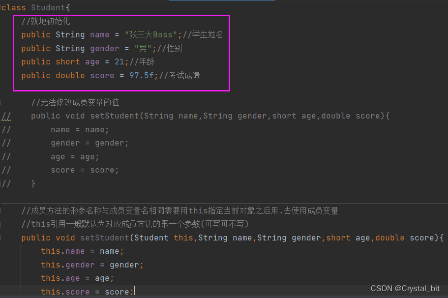 1. 就地初始化:直接在定义时赋初始值。(上述示例中我就是就地初始化的)