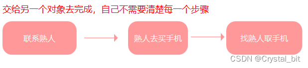 这件事情涉及到三个对象:人,自己的熟人,手机。是由我们三个之间的交互去处理买手机这个问题。