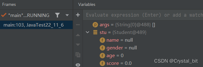 如果大家还有些不懂,我们可以试试调试(打断点-->右击选择Debug),首先实例化一个学生对象,在不用this引用指向当前对象情况下去看看该学生对象的成员变量值是否被修改: