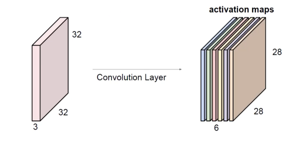 上面这个图中有六个特征图,表示用过六种不同方法进行卷积后得到的结果。