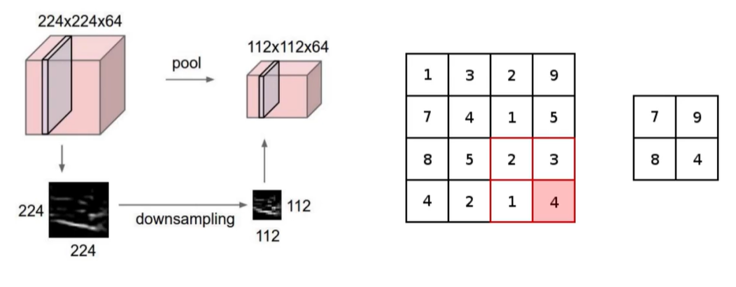 将特征图均分为相同的区域,然后取出其中最大的值,组成一个新的矩阵。为什么选择最大的值呢?因为,在神经网络中,得到一个较大的值时他的权重参数也比较大,说明在整个网络中它比较重要。