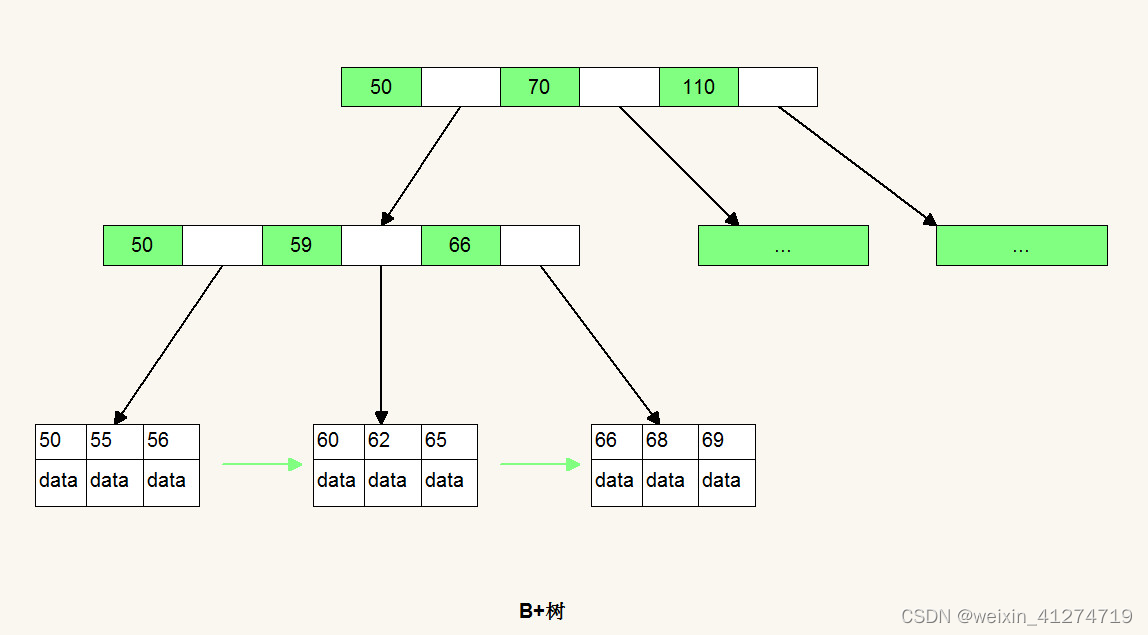 (2)B+树更适合外部存储,也就是磁盘存储,使用B-结构的话,每次磁盘预读中的很多数据是用不上的数据。因此,它没能利用好磁盘预读的提供的数据。由于节点内无 data 域,每个节点能索引的范围更大更精确。
