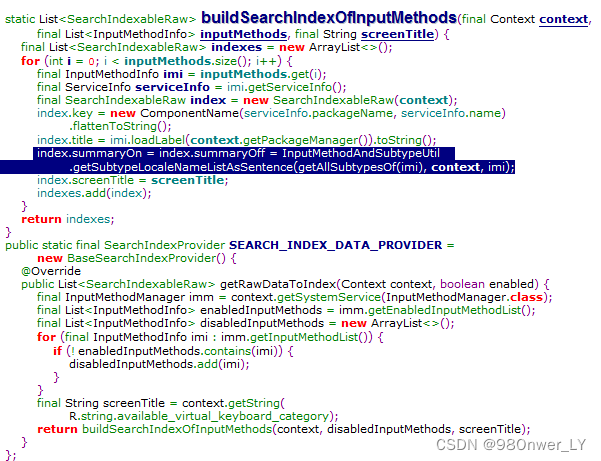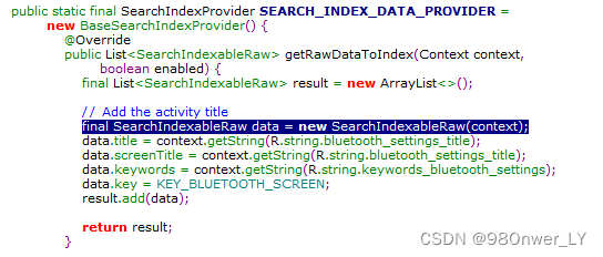 - 定义变量SEARCH_INDEX_DATA_PROVIDER,用来供Settings利用反射获取到相应的检索数据。