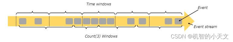 在流上的工作方式与批处理不同,因为流通常是无限的,所以不可能计算流中的所有元素,流上的聚合事件则由窗口限定,例如“过去 5 分钟的计数”或“最后 100 个元素的总和”。划定的一段范围,称为窗口;在这个范围内的数据进行处理,就是窗口计算。