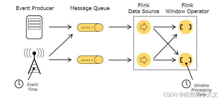 摄入时间:数据进入flink数据流的时间,即数据源算子读入数据的时间,相当于事件时间和处理时间的中和,把数据源任务的处理时间当作数据的产生时间添加到数据里。