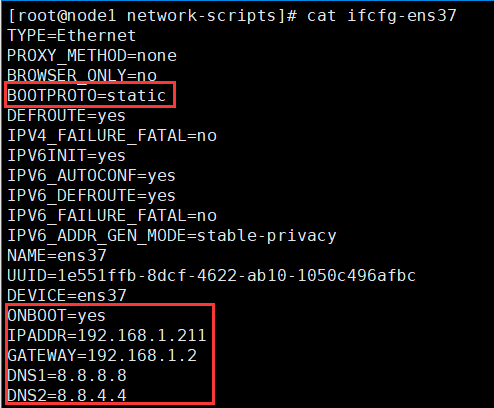 在/etc/sysconfig/network-scripts目录下设置对应的网口,设置为静态IP并且开机启动,同时设置DNS