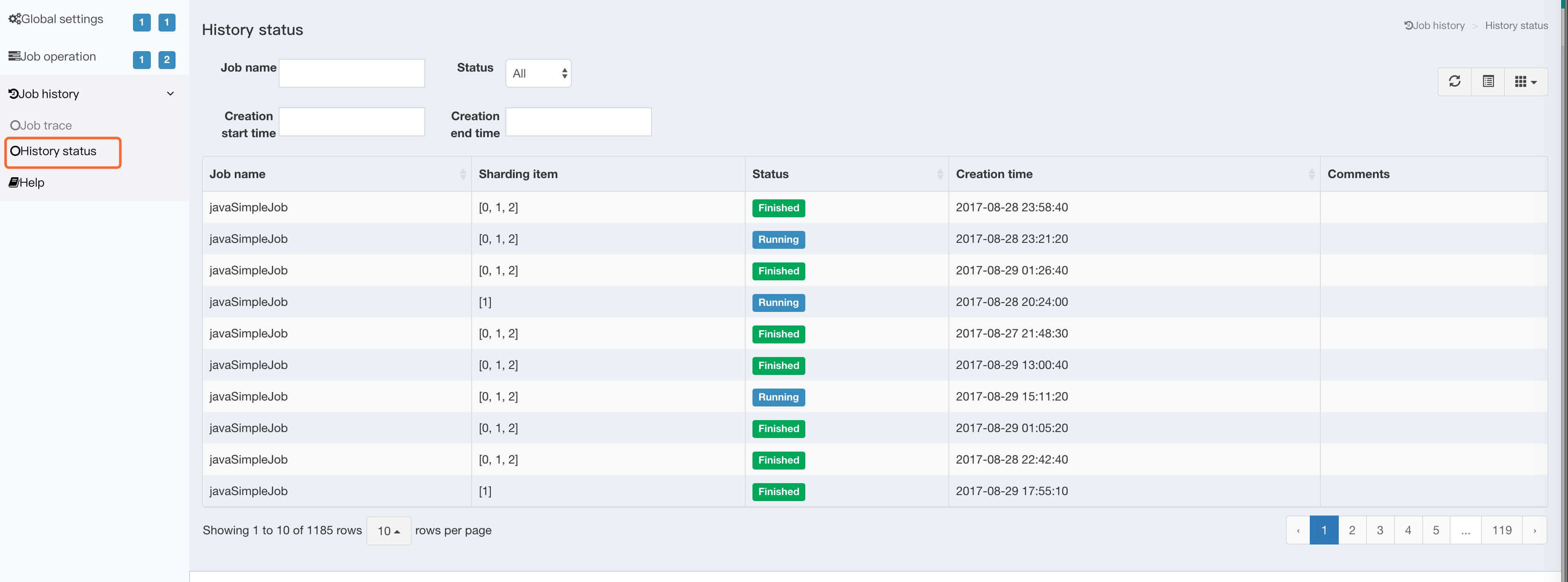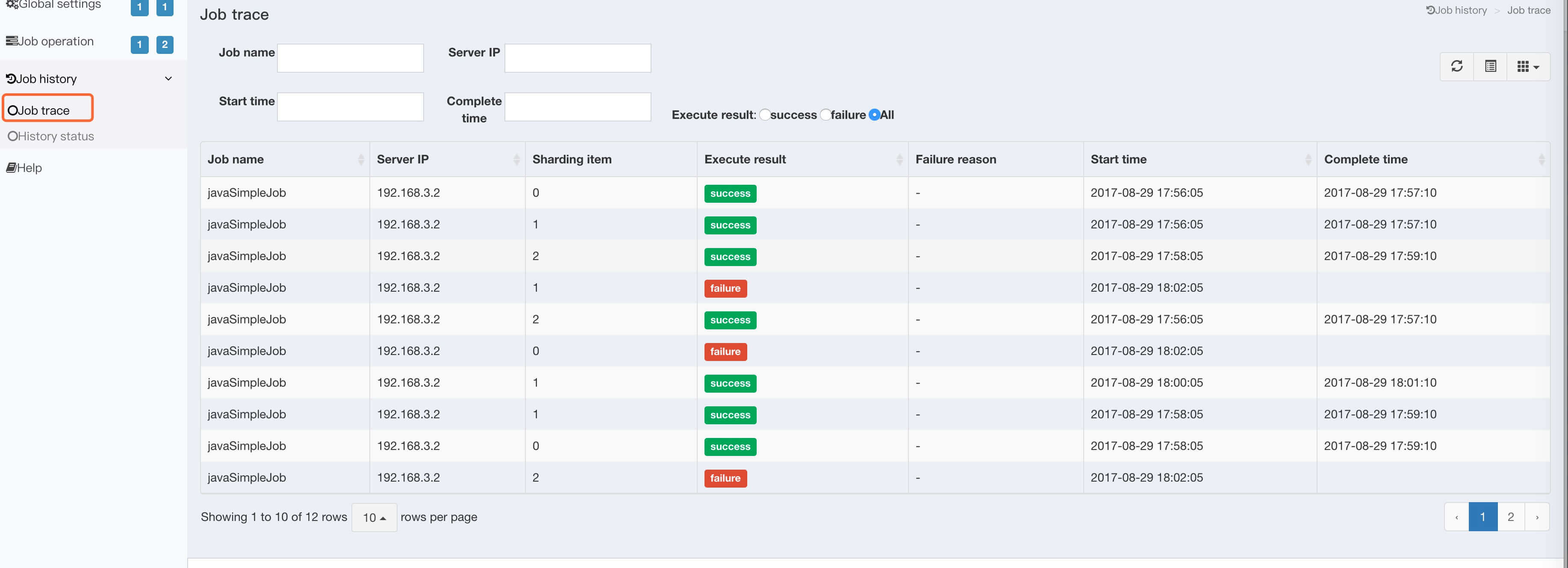JOB_EXECUTION_LOG/JOB_STATUS_TRACE_LOG)的RESTful APIServerOperationRestfulApi :服务器维度操作的RESTful API。