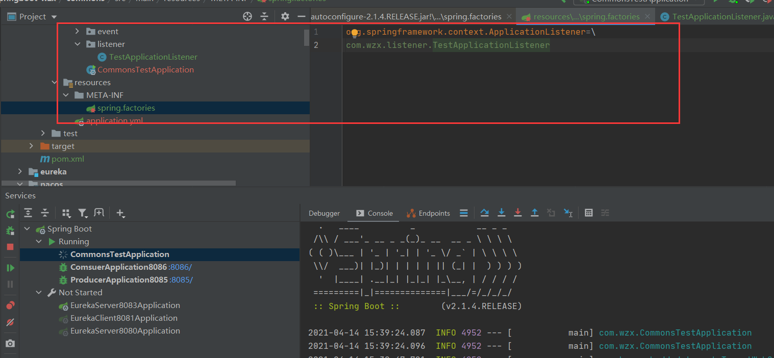 实现ApplicationListener指定要监听的事件类型,监听器必须注入容器当中可以使用注解方式(例如:@Component),或者在资源路径下新建META-INF/spring.factories文件导入