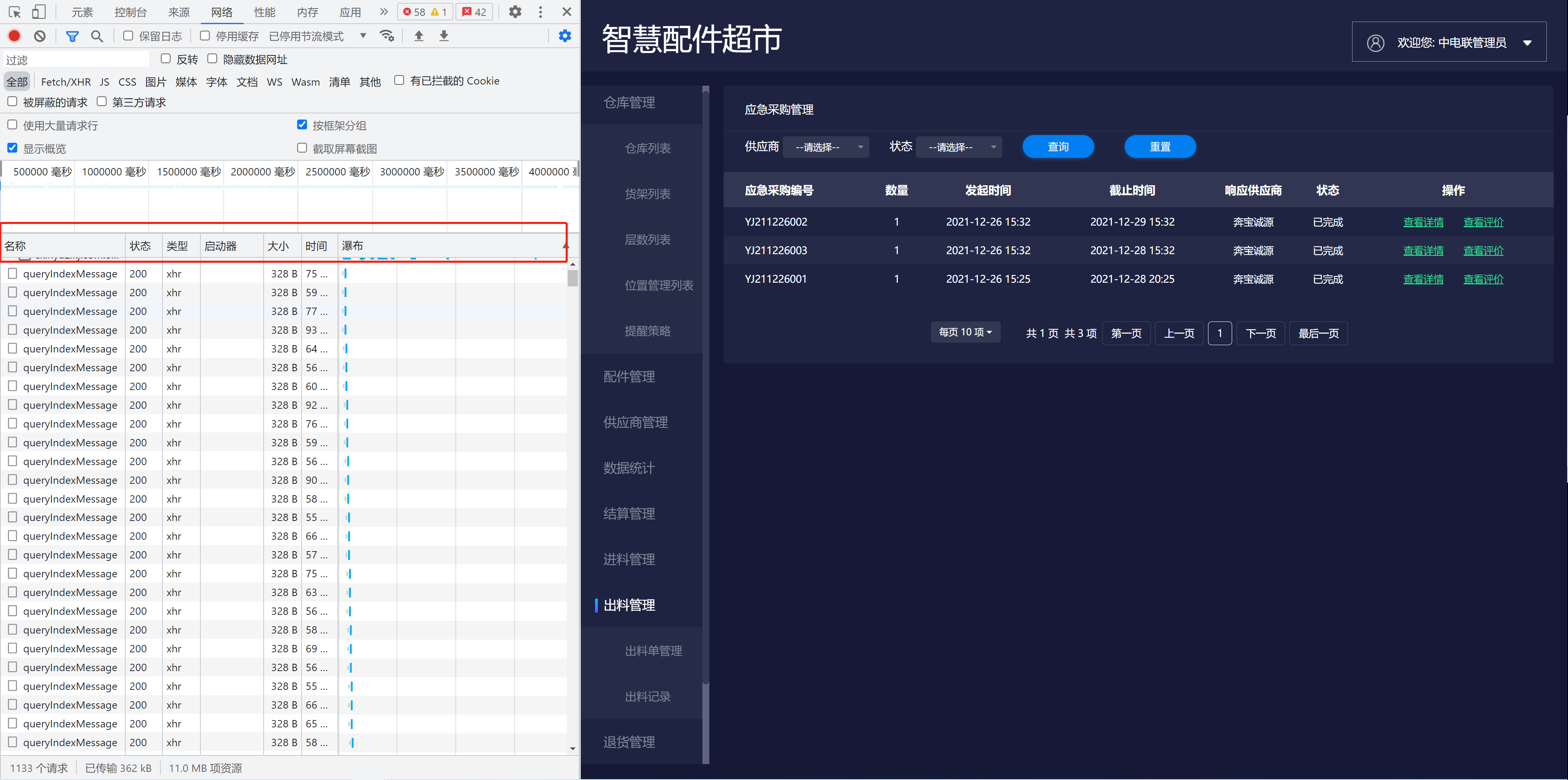 页面上能看到请求地址及每个URL的网络相关请求信息都可以看的到URL,响应状态码,响应数据类型,响应数据大小还有响应时间