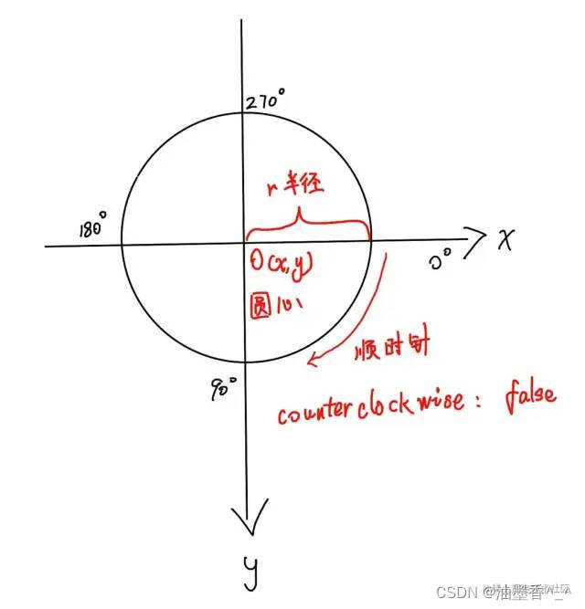 W3C 坐标系 和 数学直角坐标系 的 X轴 是一样的,只是 Y轴 的反向相反。