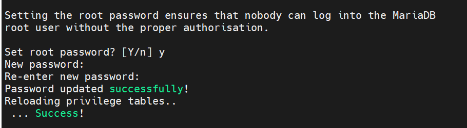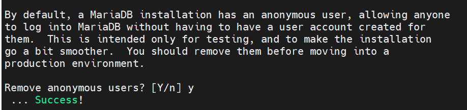 输入新密码,回车后在重复输入确认密码,回车完成密码设置,然后弹出是否删除匿名用户,输入y,回车完成匿名用户删除