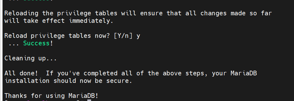 提示输入root用户密码,输入后回车,成功登录Mariadb,