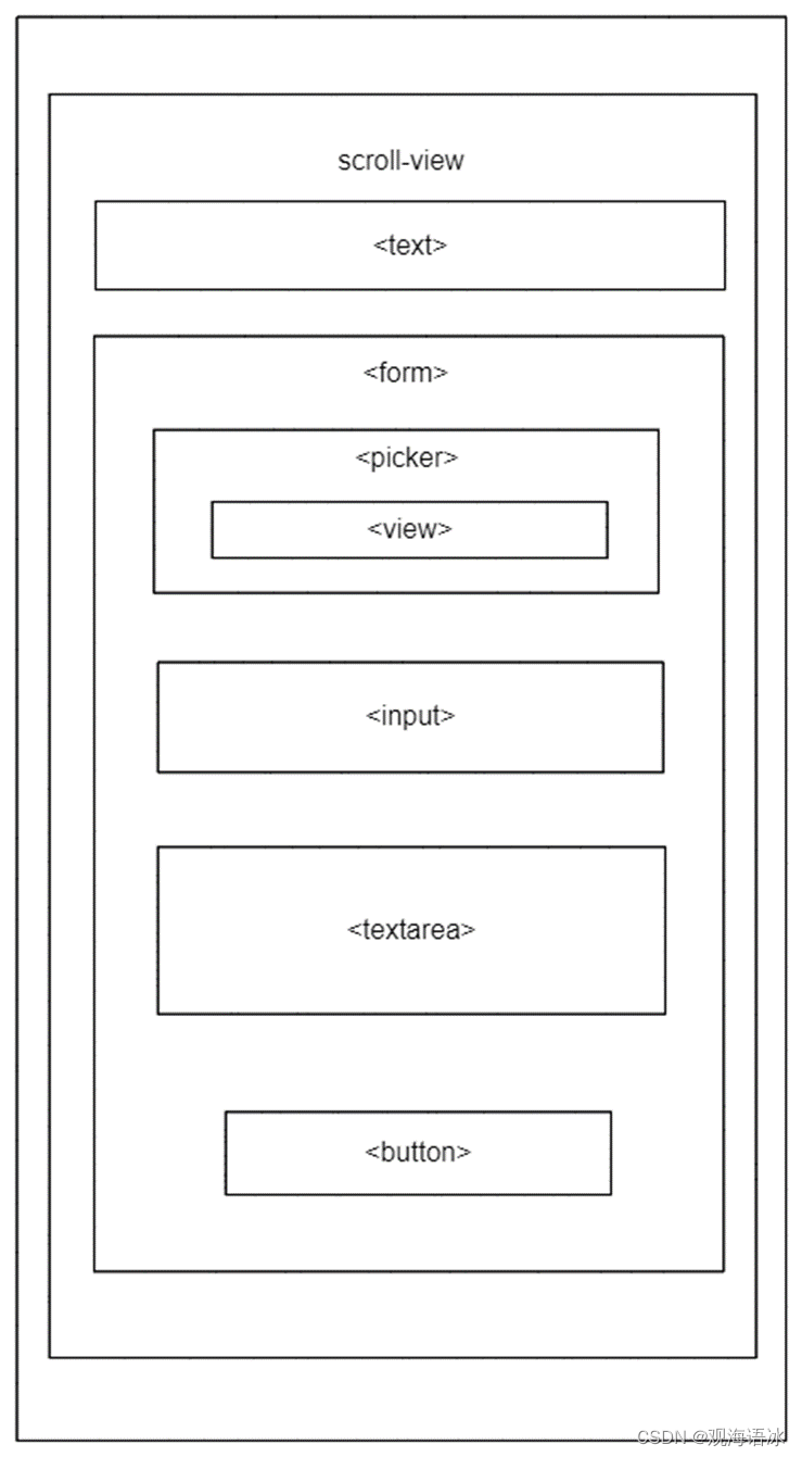 ①因为需要用到使用者编写的任务,所以需要表单组件form,它可以将组件内的用户输入的switch input checkbox slider radio picker 提交,同时当点击 form 表单中 form-type 为 submit 的 button 组件时,会将表单组件中的 value 值进行提交,需要在表单组件中加上 name 来作为 key。