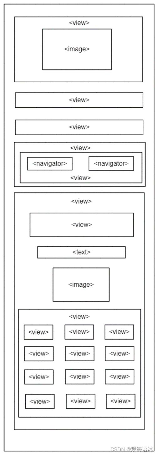 ①这个页面并不需要很高深的技术,只需要将一些基础组件排布组合即可。这个页面相对难度较大的是用来实现页面跳转功能navigator组件,使用这个组件的时候需要注意的是用url属性确定需要跳转的页面,同时在app.json页面中加入这个页面的声明。