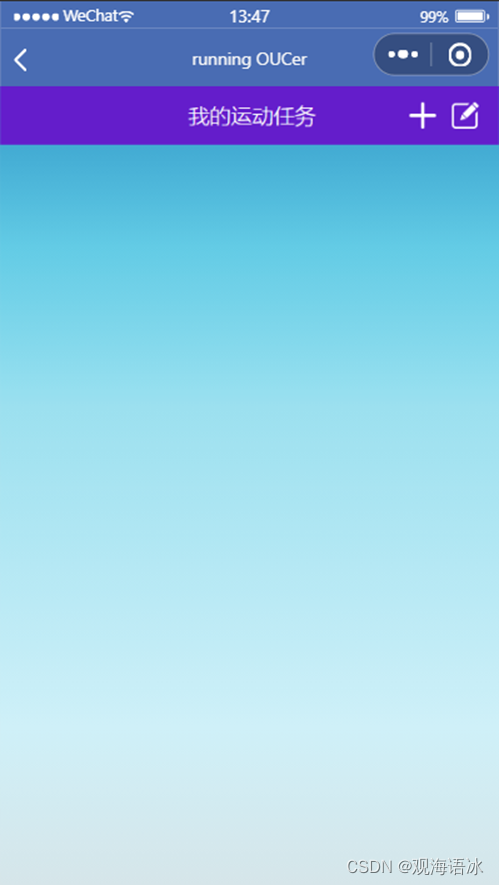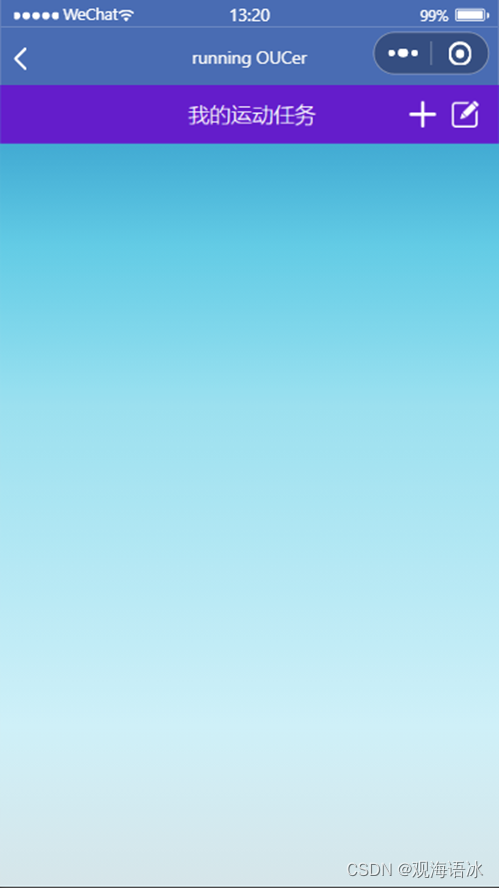 因为现在还没有创建过任务,所以这里的任务列表是空白的,在“我的运动任务”这个文字框的右边有两个按钮,一个是创建任务,即加号图标那个,另一个是编辑任务,即纸笔图标的那个。