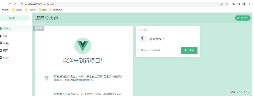 因为前端项目也需要依赖一些插件:比如:axios elementui 那么我们可以使用npm下载并安装到当前项目。