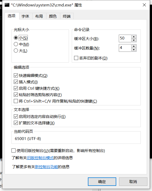 打开cmd,输入chcp 65001,回车后显示Active code page: 65001就代表转换成功。原理就是把cmd中默认的936(简体中文)切换为65001(UTF-8) 。