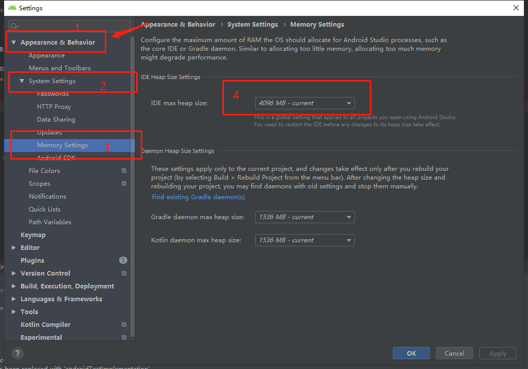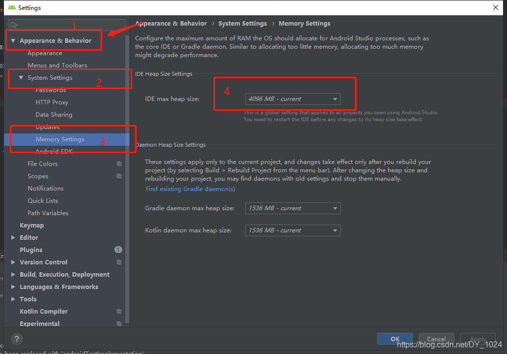 官方文档:https://developer.android.com/studio/intro/studio-config#adjusting_heap_size