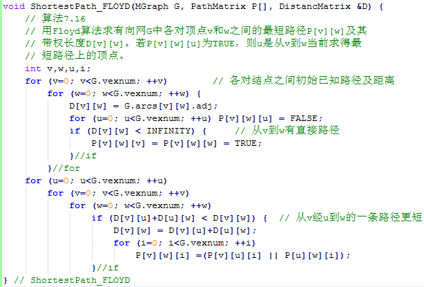 void ShortestPath_Floyd(MGraph,Patharc*,ShortestPathTable*);//算法