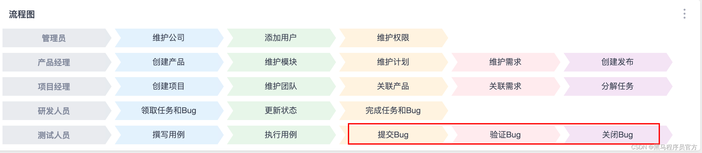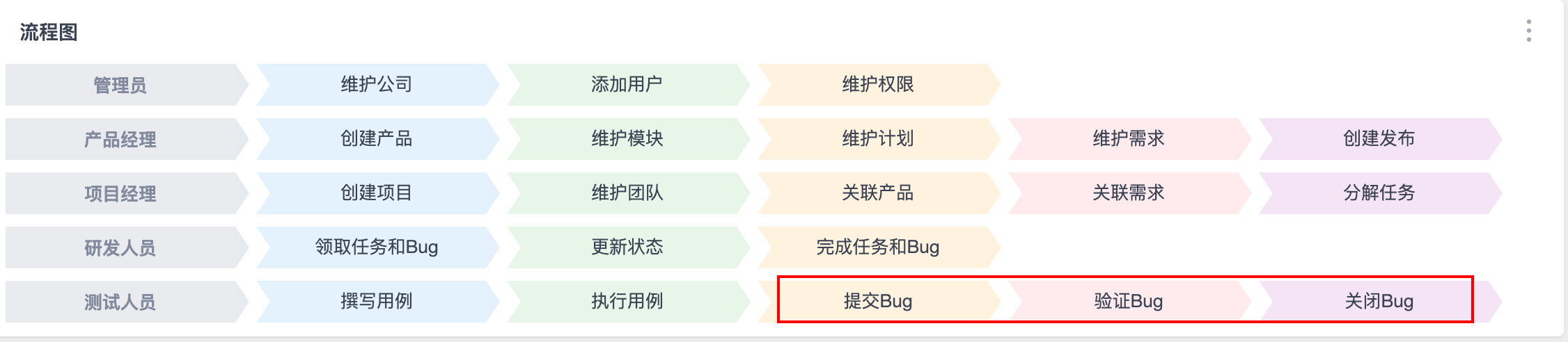 设计用例->执行用例(执行测试)->缺陷(提交、验证、关闭)