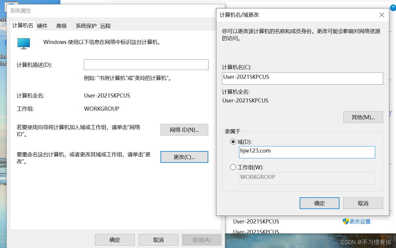 4、输入密码和域的密码成功加入域(因为出现了下面的问题重新搭建了域,名称为zkaq.cn)