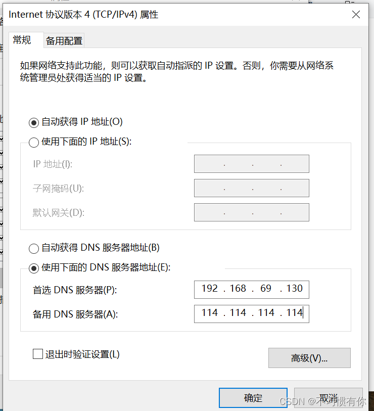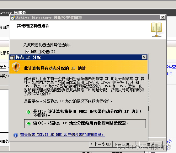 这里可能会无法选择静态ip地址,我主要是用来进行测试,所以就选择动态ip