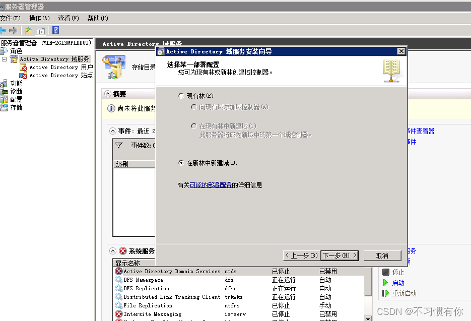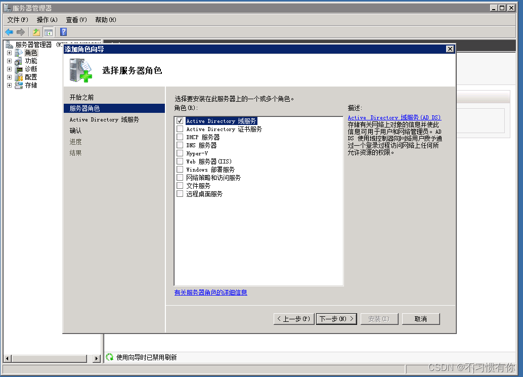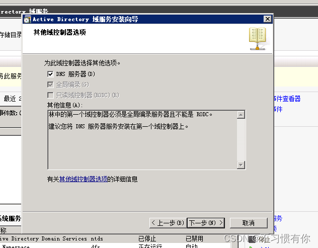 2、下一步,只用选择域服务,如果全选择需要大量的时间
