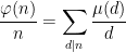 这说明在卷积下莫比乌斯函数和1互为逆元,故可推出下面式子: