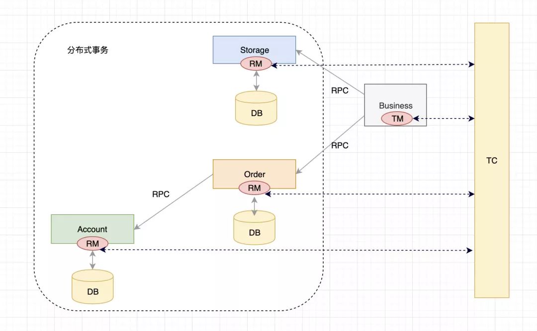 @GlobalTransactional)来说明他是一个全局事务,这时他的角色为 TM(事务管理者) - Business 会请求 TC(事务协调器,一个独立运行的服务),说明自己要开启一个全局事务,TC 会生成一个全局事务ID(XID),并返回给 Business