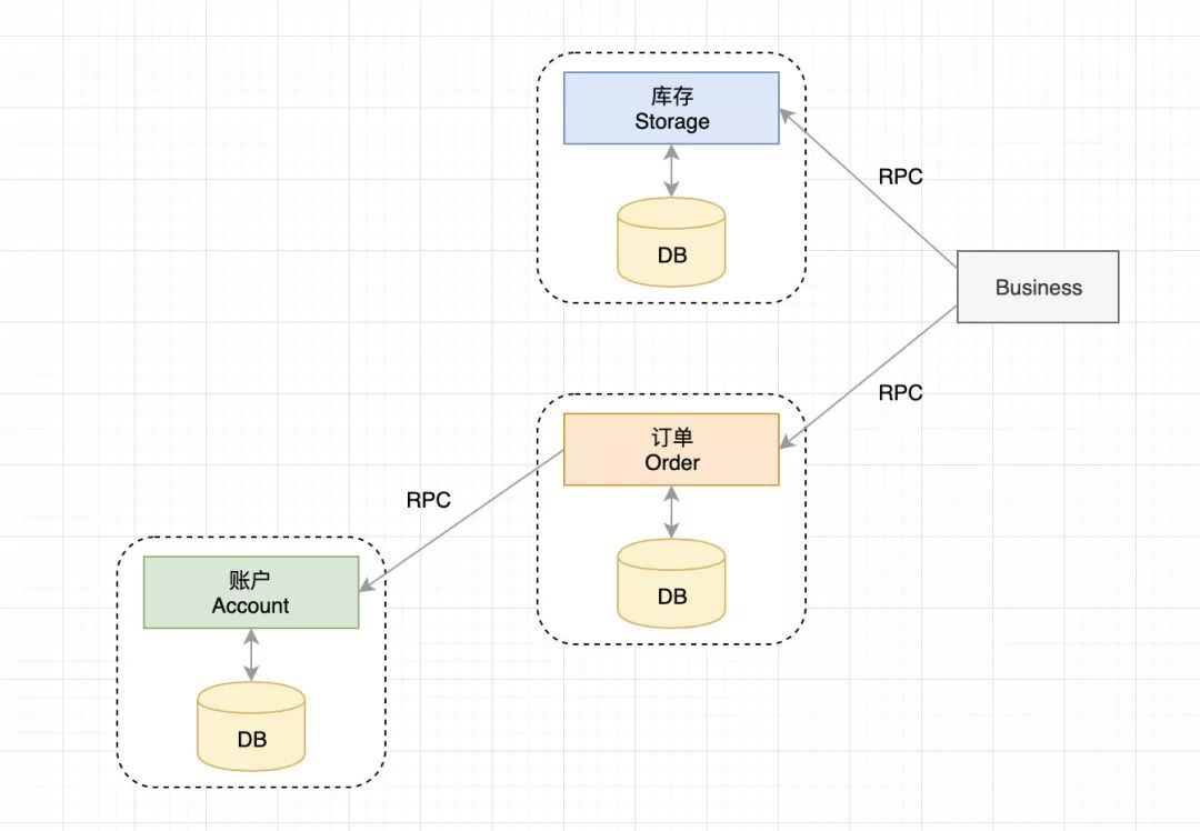- Business 得到 XID 后,开始调用微服务,例如调用 Storage。