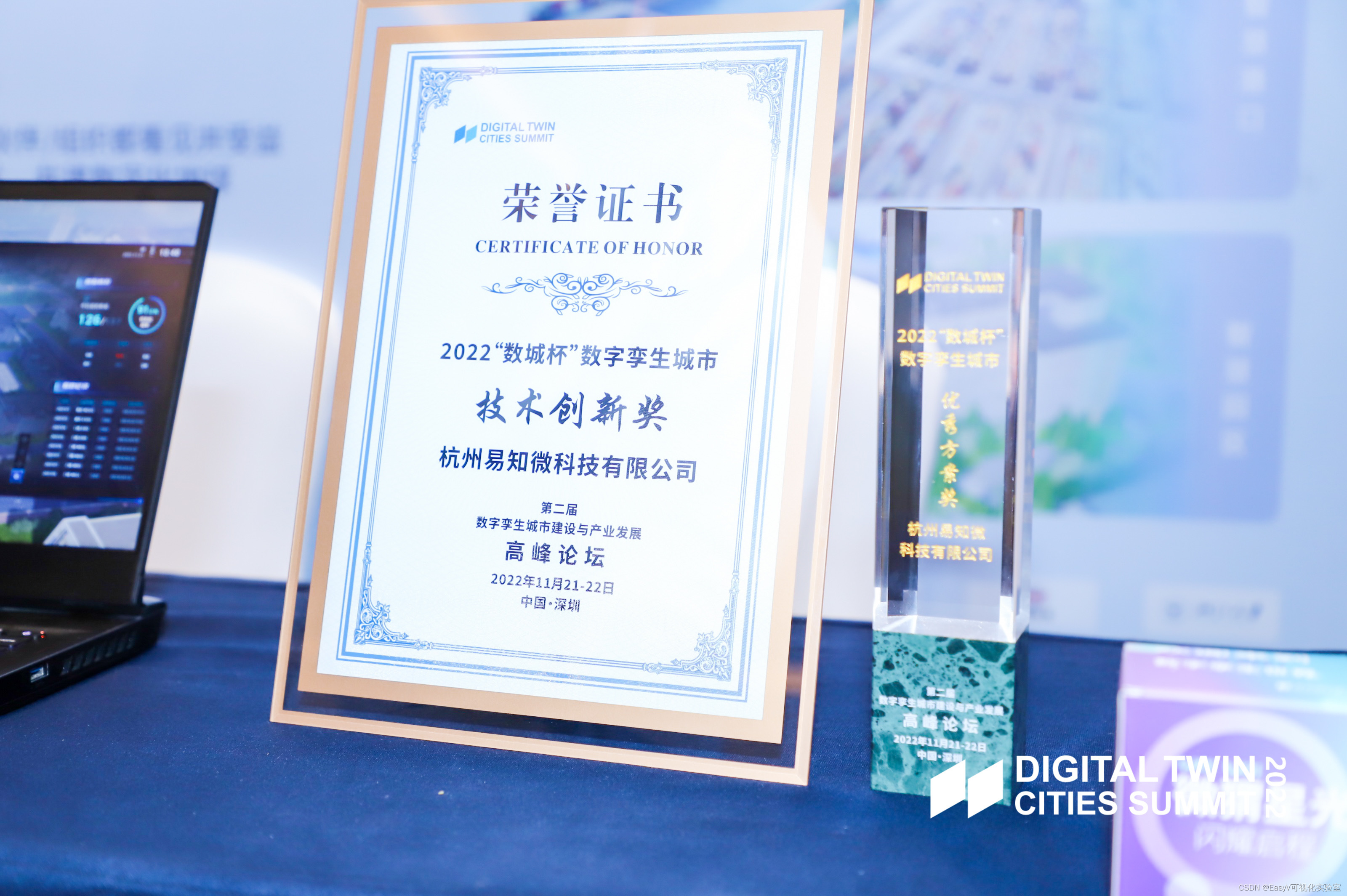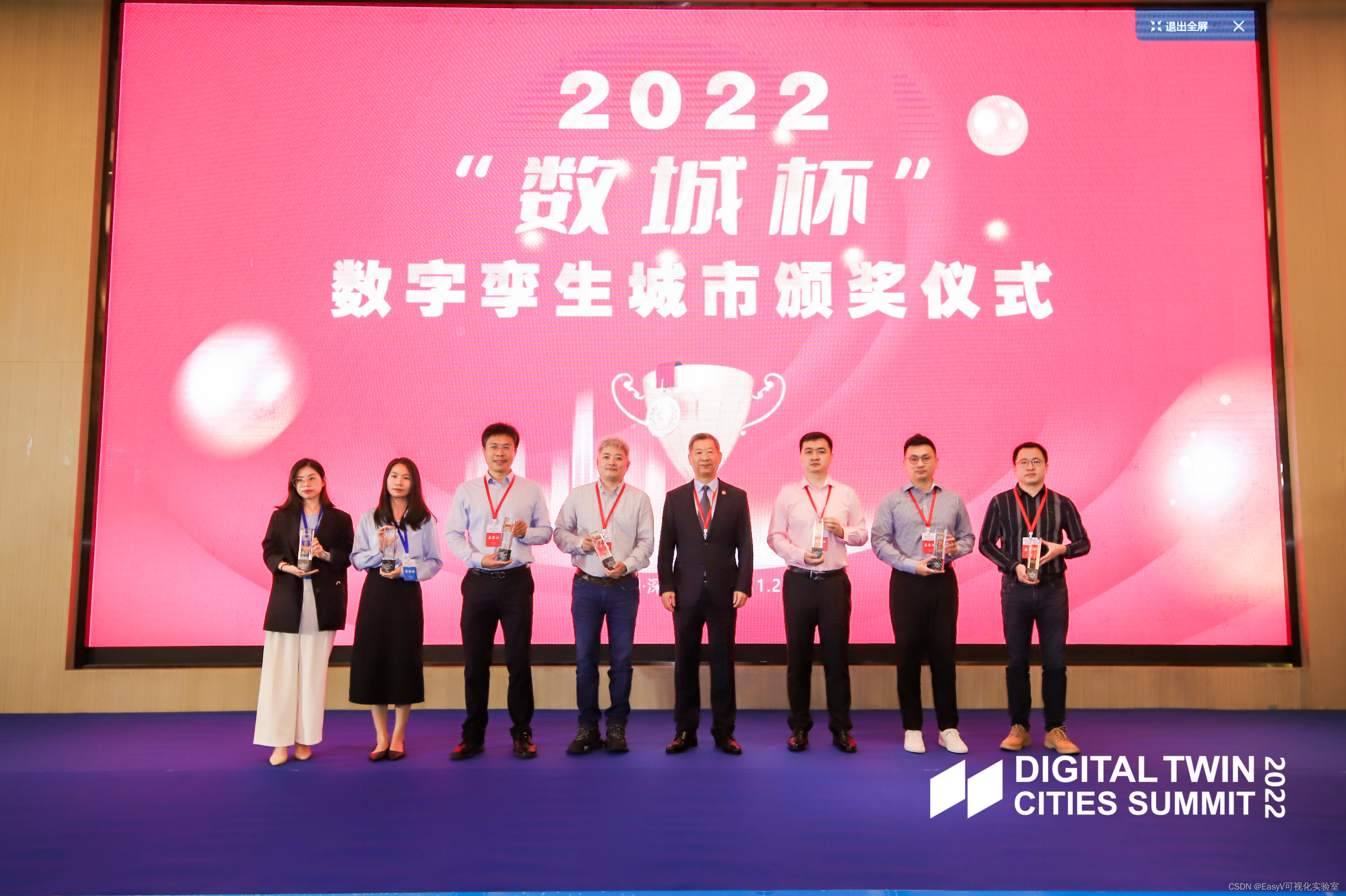 易知微凭借自主研发的EasyV数字孪生可视化搭建平台和数字孪生交通枢纽解决方案一举斩获2022年度“数城杯”数字孪生城市「技术创新奖」与「优秀方案奖」。