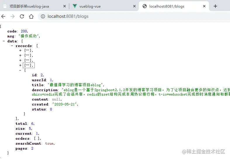 复制代码逻辑依然简单,校验表单,然后点击按钮提交表单,注意头部加上Authorization信息,返回结果弹窗提示操作成功,然后跳转到博客列表页面。emm,和写ajax没啥区别。熟悉一下vue的一些指令使用即可。 然后因为编辑和添加是同一个页面,所以有了create()方法,比如从编辑连接/blog/7/edit中获取blogId为7的这个id。然后回显博客信息。获取方式是const blogId = this.$route.params.blogId。