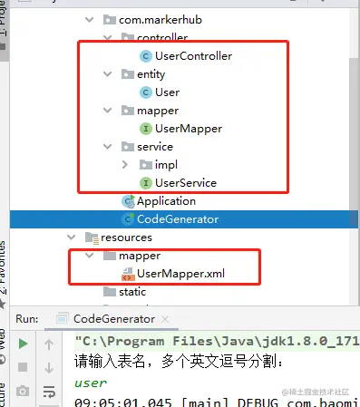 如果你没再用其他插件,那么现在就已经可以使用mybatis plus了,官方给我们提供了一个代码生成器,然后我写上自己的参数之后,就可以直接根据数据库表信息生成entity、service、mapper等接口和实现类。