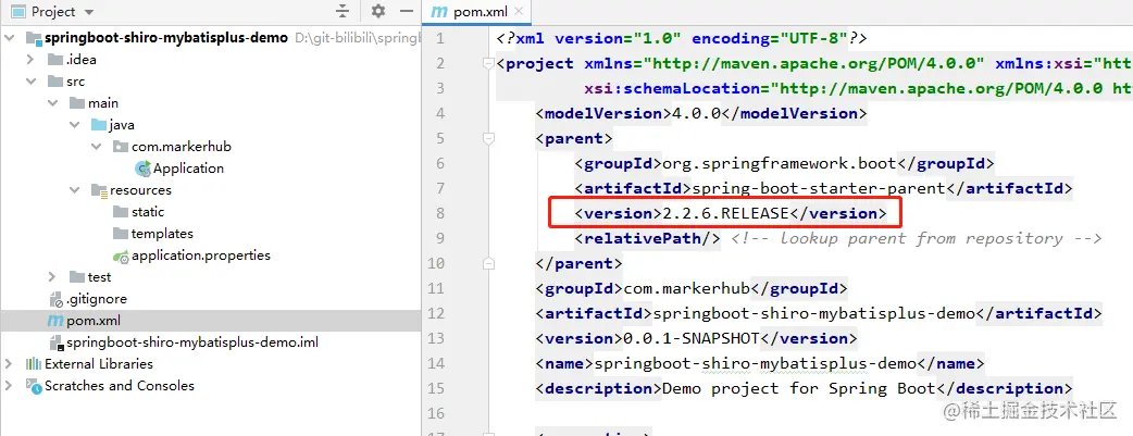 新建好的项目结构如下,SpringBoot版本使用的目前最新的2.2.6.RELEASE版本
