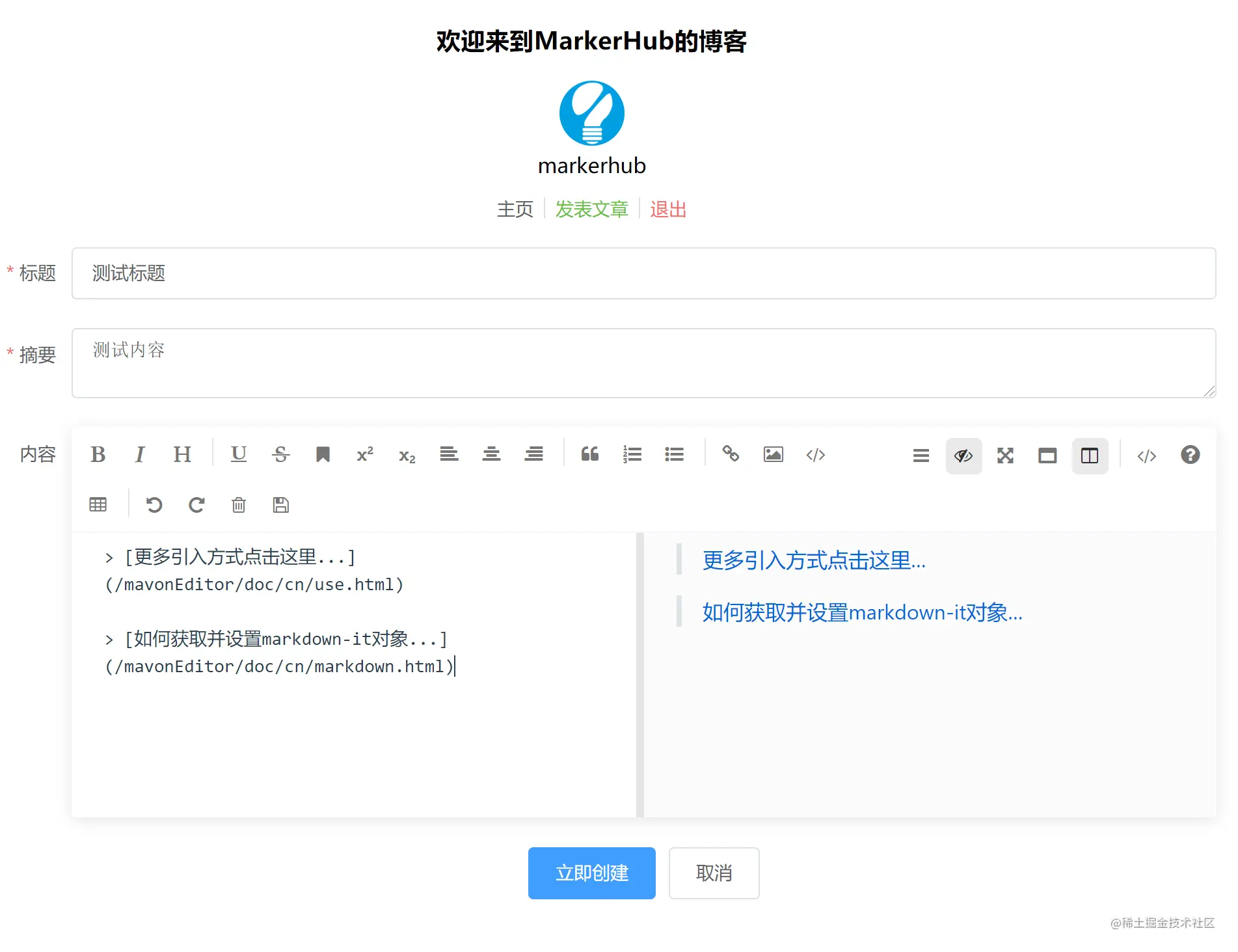 对了,mavon-editor因为已经全局注册,所以我们直接使用组件即可: