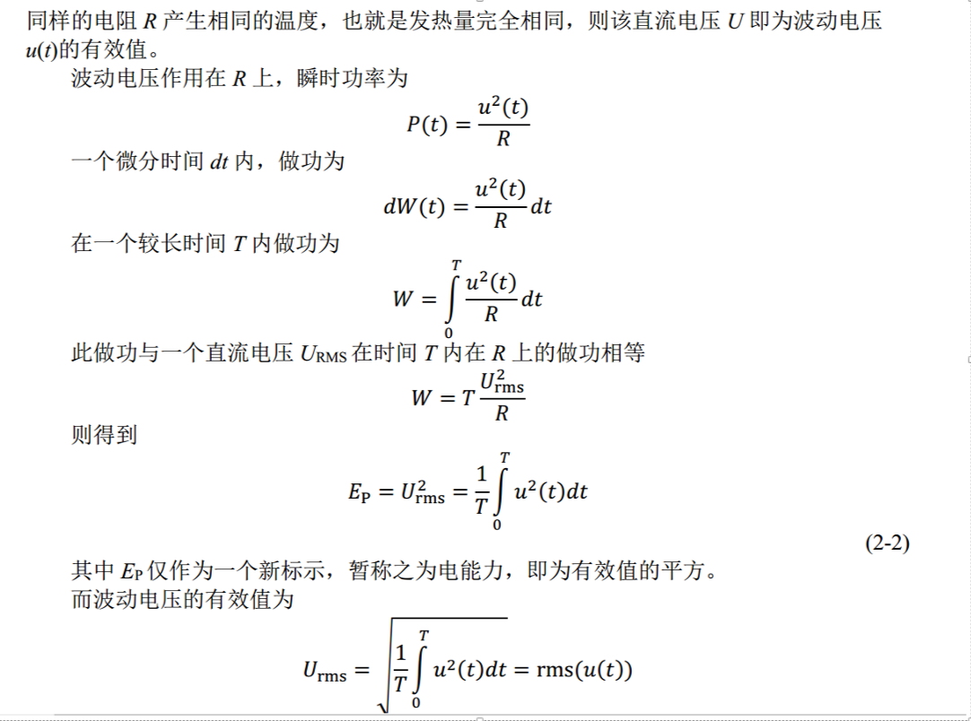 下面是对交流电压有效值算法的数学推导,(这里我用的是和交流电压相似的一个物理量,可以理解成交流电压的有效值算法)