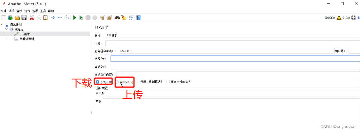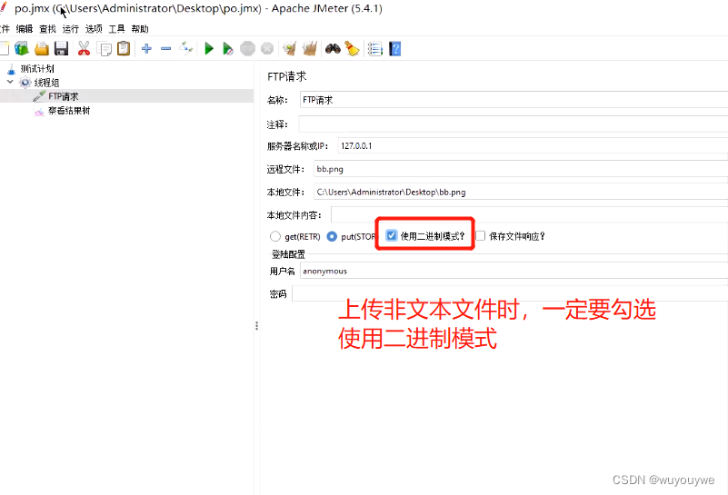 jmeter之上传、下载文件今天讲的是上传和下载文件下载文件: 桌面文件就下载成功;上传文件:这样就可以正常把文件上传到服务器中; 版权声明:本文为wuyouywe原创文章,遵循CC 4.0 BY-SA版权协议,转载请附上原文出处链接和本声明。原文链接:https://blog.csdn.net/wuyouywe/article/details/126713993