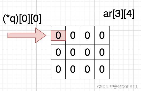 int ar[3][4] = {0};可以知道,这个二维数组三行四列,那么我们如何定义一个指针,使它指向这个二维数组?