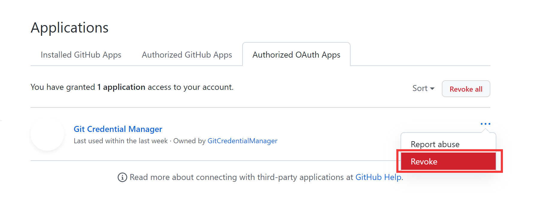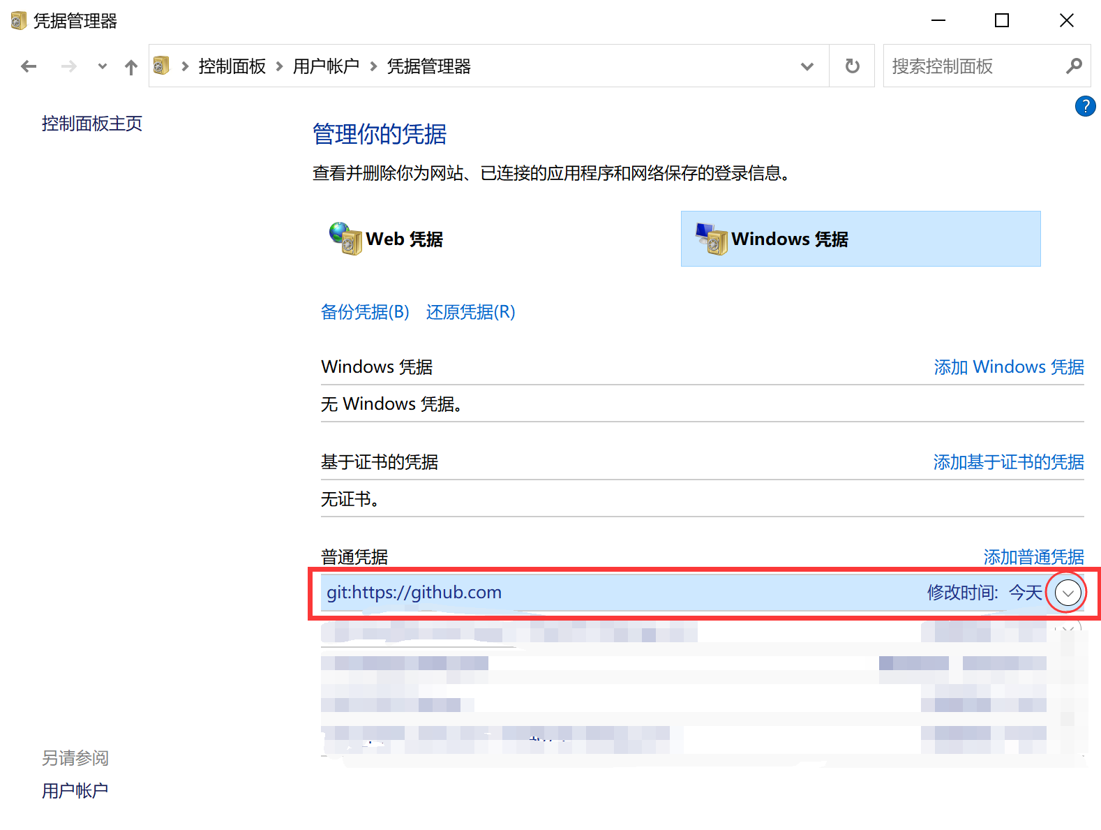 【github】删除之前授权访问的权限方法一:在这个链接里可以管理曾授权过的Sign in to GitHub · GitHub直接删除就好了 方法二:本地删除凭证控制面板→账户→管理Windows凭证→删除github的凭证 版权声明:本文为Shino_jie原创文章,遵循CC 4.0 BY-SA版权协议,转载请附上原文出处链接和本声明。原文链接:https://blog.csdn.net/Shino_jie/article/details/124348778