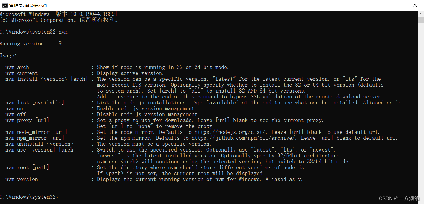 验证nvm是否安装成功:一定要以管理员身份运行cmd命令提示符